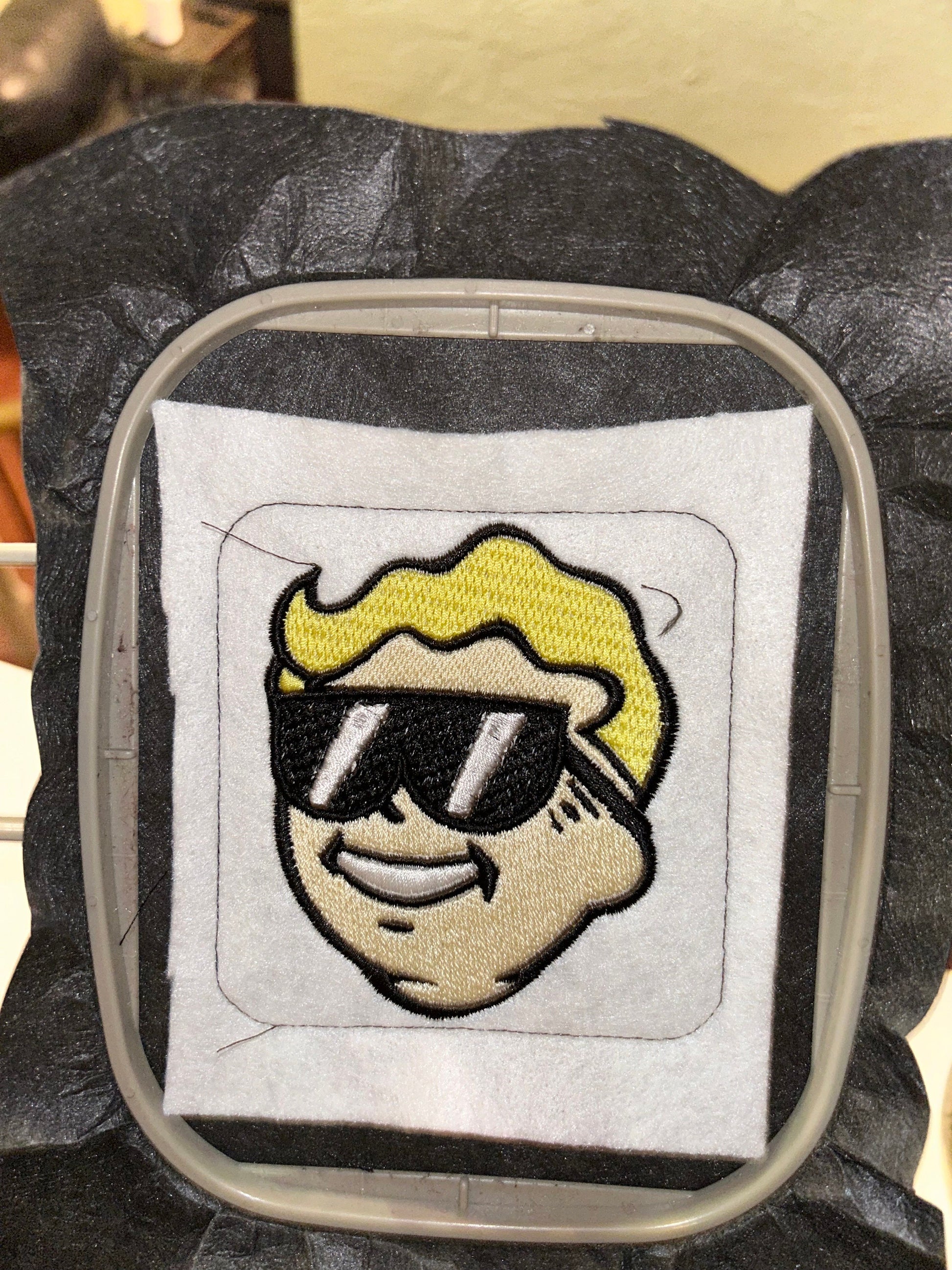 Step into the retro-futuristic world with this Fallout Vault Boy Iron On Patch! Measuring 2.8” x 3.8” inches, this patch is individually machine embroidered by me with meticulous detail.